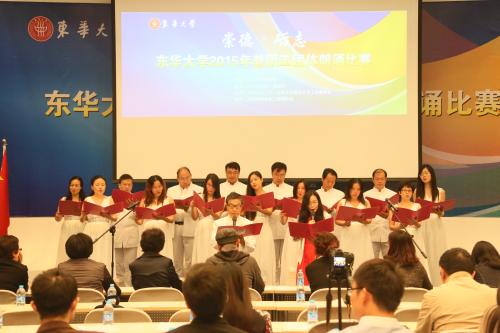 10月30日,我校“崇德·砺志”教职工团体朗诵比赛在松江校区举行,共有来自各学院部处的15支队伍参赛。经过比拼,机关团队凭借作品《我爱东华》夺得一等奖,人文学院、计算机学院分别凭借作品《中国人,不跪的人》、《我是一段程序》分获二等奖,三等奖则由纺织学院、图书馆和机械学院凭作品《织·行》、《图书馆》和《教师之歌》摘得。