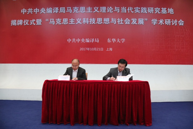 10月21日,中共中央编译局马克思主义理论与当代实践研究基地在我校揭牌成立。我校党委书记朱民,中共中央编译局副局长季正聚,上海市委宣传部副部长燕爽,我校党委副书记刘淑慧、副校长邱高,中共中央编译局办公厅副主任胡长栓、中共中央编译局马克思主义理论研究部副主任林进平等领导和复旦、南大等单位的马克思主义理论知名专家学者及嘉宾出席揭牌仪式。揭牌仪式由刘淑慧主持。