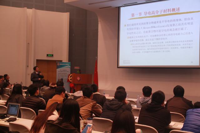 汪济奎教授围绕导电高分子材料做学术讲座。他结合自己的人生经历,由浅入深地引导广大学子迈入材料专业领域,详细讲解了导电高分子材料及其应用,并阐述了科研的重要意义,并对新一代青年人寄予厚望。汪教授对同学们的提问现场进行了解答。
