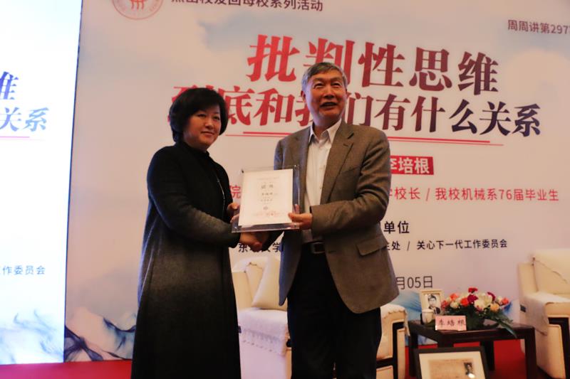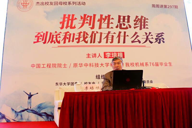 12月5日,中国工程院院士、原华中科技大学校长、我校76届校友李培根回到母校,做客“周周讲”第297期“杰出校友回母校”系列活动,给东华学子们带来了一场题为“批判性思维到底和我们有什么关系?”的主题讲座,与青年学子和教师代表畅谈批判性思维与大学生之间的关系。