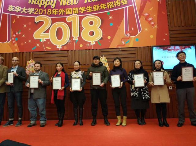 为了营造尊师氛围,弘扬尚师之风,国际学生联谊会开展了2017年“留学生心目中的好老师”评选活动,全校留学生积极参与,共评选出来自11个学院的“留学生心目中的好老师”45名,在当晚举办的外国留学生新年招待会上举行了颁奖仪式。