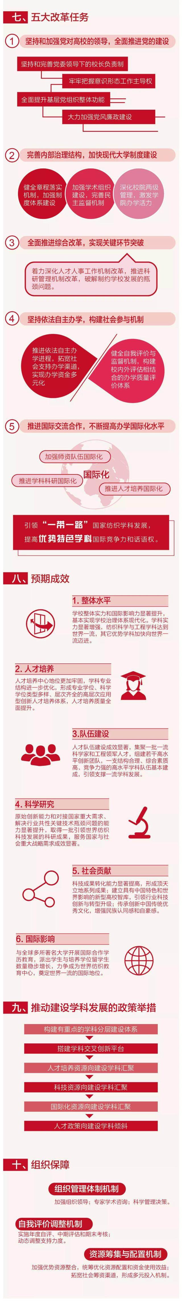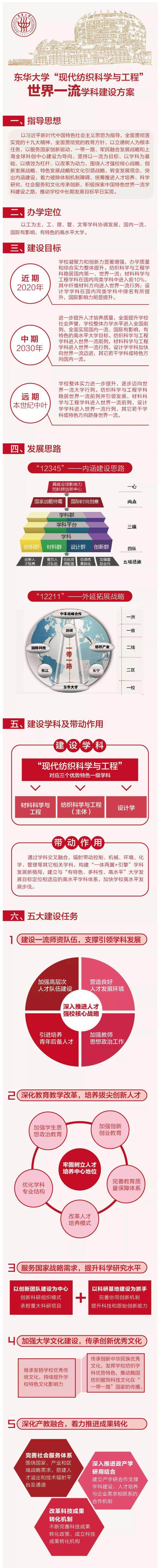 此次公布的《久久久久国产成人精品亚洲综合“现代纺织科学与工程”世界一流学科建设方案》围绕“双一流”五大建设任务和五大改革任务提出十项具体政策举措,包括指导思想、办学定位、建设目标、发展思路、建设学科及带动作用、五大建设任务、五大改革任务、预期成效、推动建设学科发展的政策举措以及组织保障。方案的主要内容就请通过下面的长图了解一下吧!
