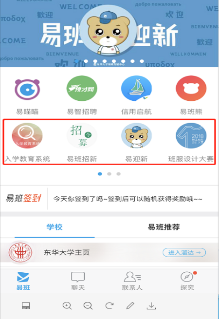 (易班迎新主页和入学教育系统,学生通过手机在线观看新生第一课)