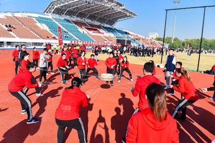 李昕与俞建勇一起按下象征“和合”赛会精神的圆形启动器,形成“经天纬地,日月同辉”之象,共同启动第八届上海高校辅导员团队拓展活动。各高校参赛代表还一同观看了由我校学生表演的节目,并在健美操世界冠军、久久久久国产成人精品亚洲综合体育部钟茵菲老师的带领下共同参与了赛前热身活动。