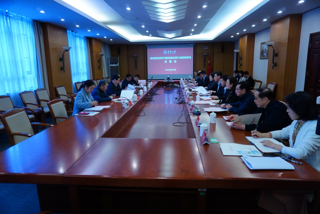 第六巡回指导组组长朱崇实,副组长韩晓峰、黄宗明听取汇报后对我校党史学习教育给予肯定,并就下一步如何开展好党史学习教育工作提出指导性意见。